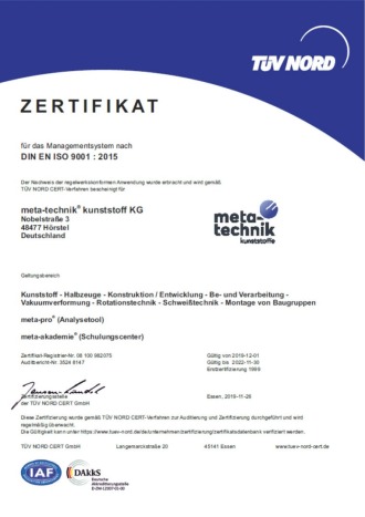 Hochwertige Materialien und eine erstklassige Verarbeitung bilden die Basis für den Qualitätsanspruch „Made in Germany“. Dabei setzen wir auf innovative Kunststoffe. Mit unserem Partner, der meta-technik® kunststoff KG, haben wir einen Spezialisten an Bord, der sich damit bestens auskennt. Über 30 Kunststofferfahrung sprechen für sich. Diese unmittelbare Nähe zu unserem Hauptproduzenten ermöglicht eine schnelle und qualitativ hochwertige Produktion.
