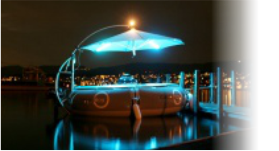 Die Regenbogenfarben der Beleuchtung machen eine Fahrt in der Dämmerung zum unvergesslichen Erlebnis. Vier mehrfarbige LED-Streifen werden an den Streben der Schirmspinne befestigt. Dadurch kann nahezu jede Farbe leicht und bequem über eine Fernbedienung eingestellt werden. Gern erstellen wir Ihnen ein hierzu ein individuelles Angebot. (Bordelektrik nötig)